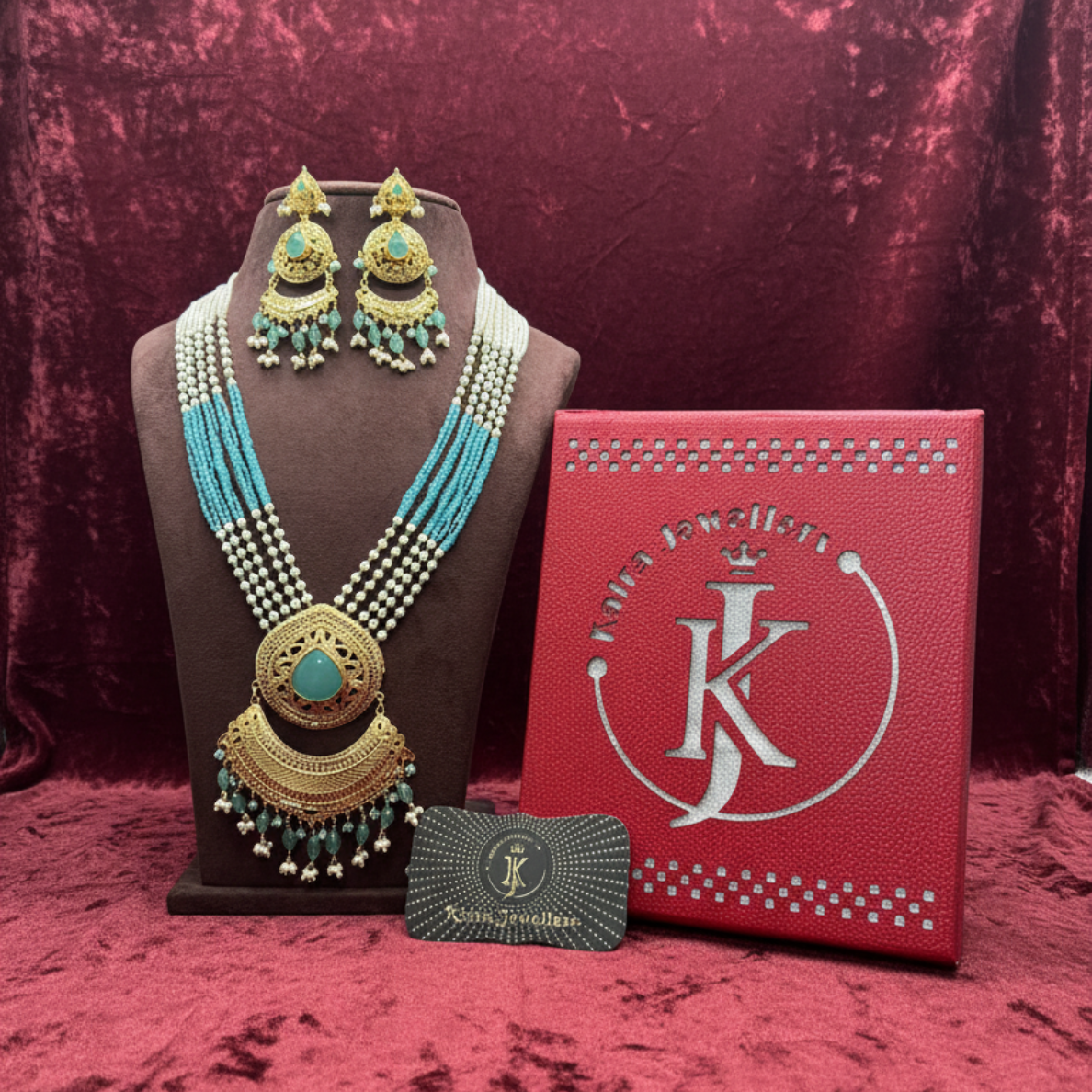 Packaging: Comes in an elegant red velvet display box with the Kuber Ornaments logo.